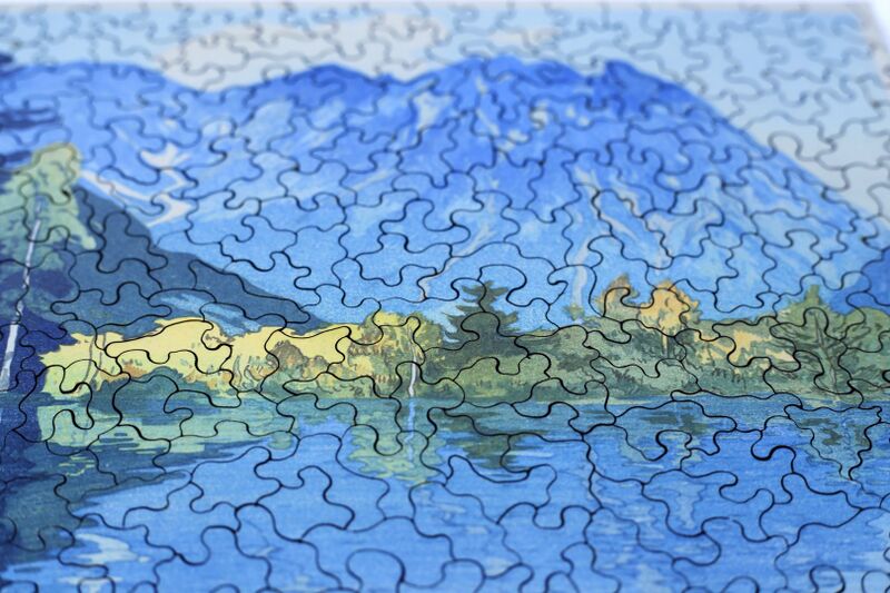 Photo rapprochée de pièces de puzzle emboîtées les unes dans les autres. Les contours des pièces sont irréguliers et suivent certaines lignes présentes dans l'illustration.