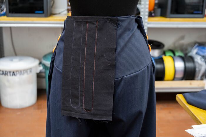 At the end of the first workshop in Nantes, the idea was to create adaptive workwear that would bring comfort and confidence. It adapts to different postures, temperatures, and activities, seamlessly and integrates medical aids.