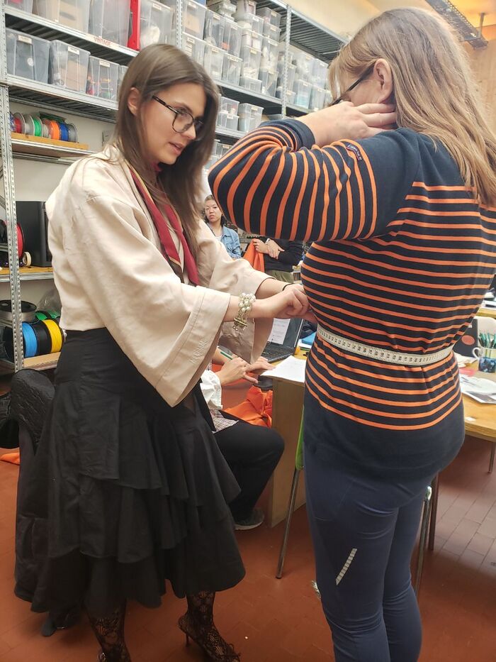 Ce vêtement a été réalisé dans le cadre de workshops consacrés au co-design de vêtements adaptés avec des personnes en situation de handicap, dans le cadre du projet SeWith.
