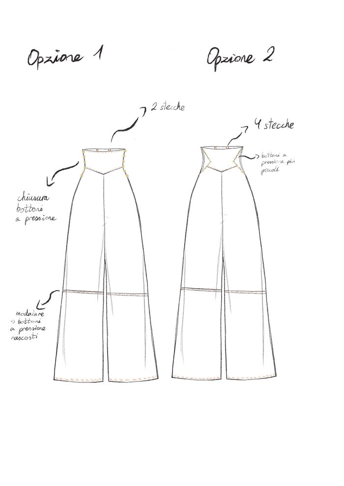 Martyna précise la place et le nombre de boutons nécessaires sur les côtés de la taille, et la forme de la taille, assez originale en forme de triangle, pour éviter une fermeture éclair ou boutonnée désagréable sur le ventre pour Bergamotte.