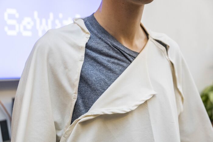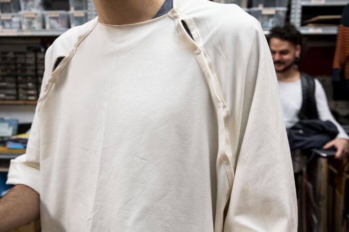Ce vêtement a été réalisé dans le cadre de workshops consacrés au co-design de vêtements adaptés avec des personnes en situation de handicap, dans le cadre du projet SeWith.